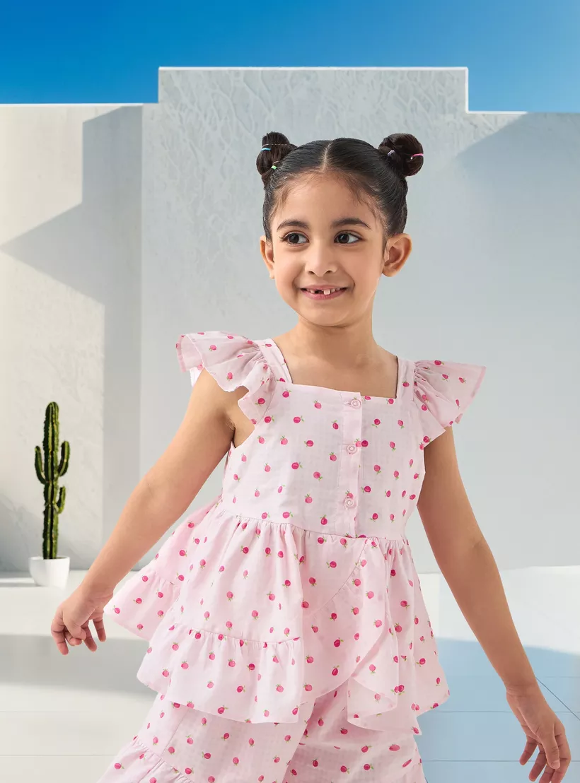 The Juniors Fruit Print Sleeveless Peplum Top and Shorts Set is a cheerful, summer-ready outfit designed for little ones who love comfort with style. Featuring a sleeveless peplum top adorned with vibrant fruit prints and paired with coordinating shorts, this set offers a fun and playful vibe. Made from soft, breathable fabric, it ensures all-day comfort, whether at playdates, casual outings, or family gatherings. The lightweight material and breezy silhouette make it perfect for warm weather while keeping your junior looking stylish.