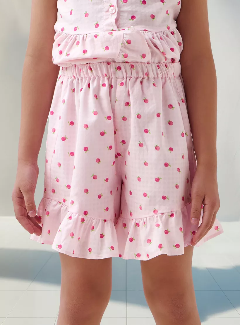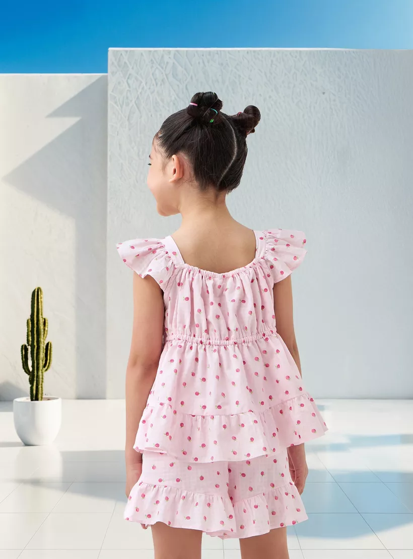 Juniors Fruit Print Sleeveless Peplum Top and Shorts Set