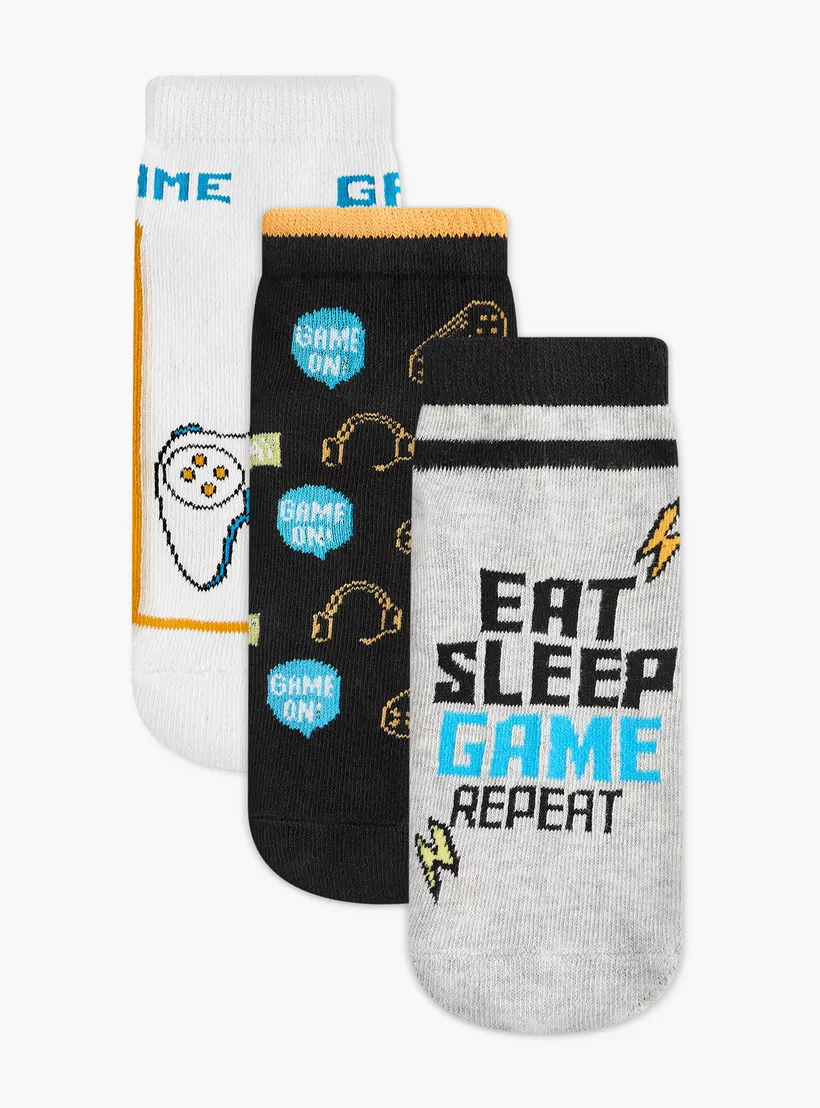 Juniors Gamer Print Ankle Length Socks – Set of 3