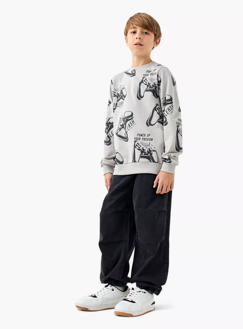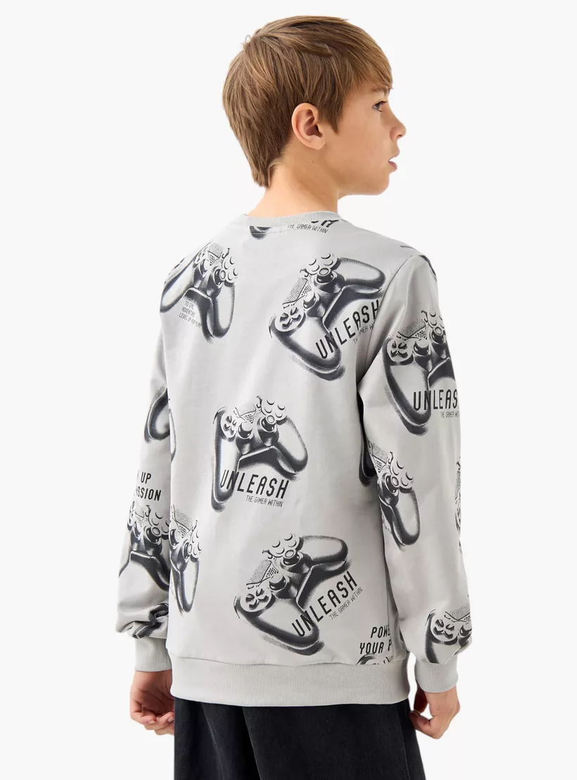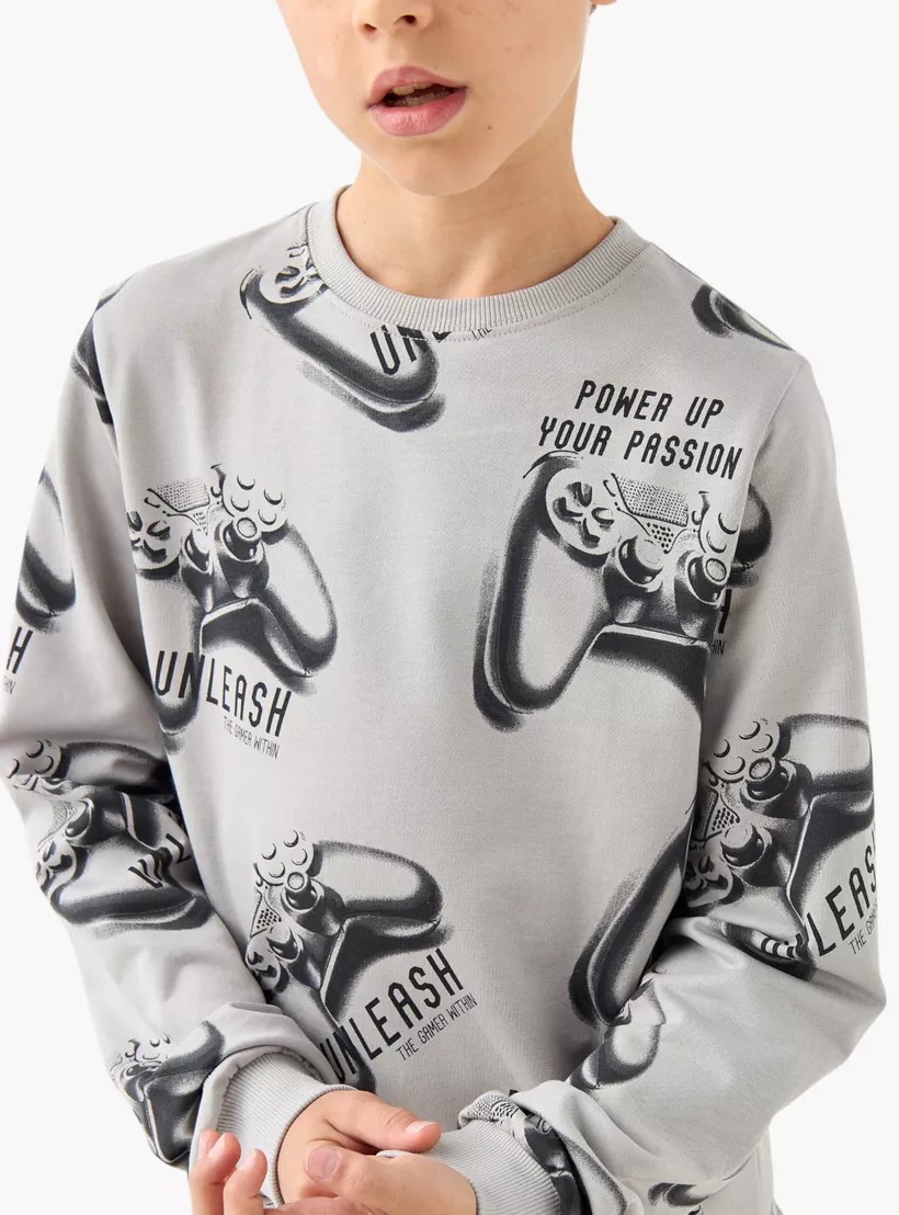 Juniors Gamer Print Sweatshirt with Long Sleeves
