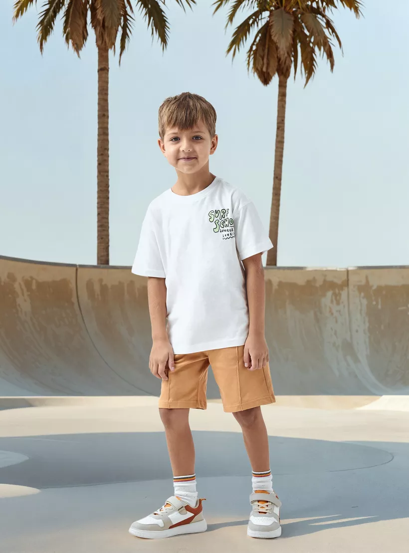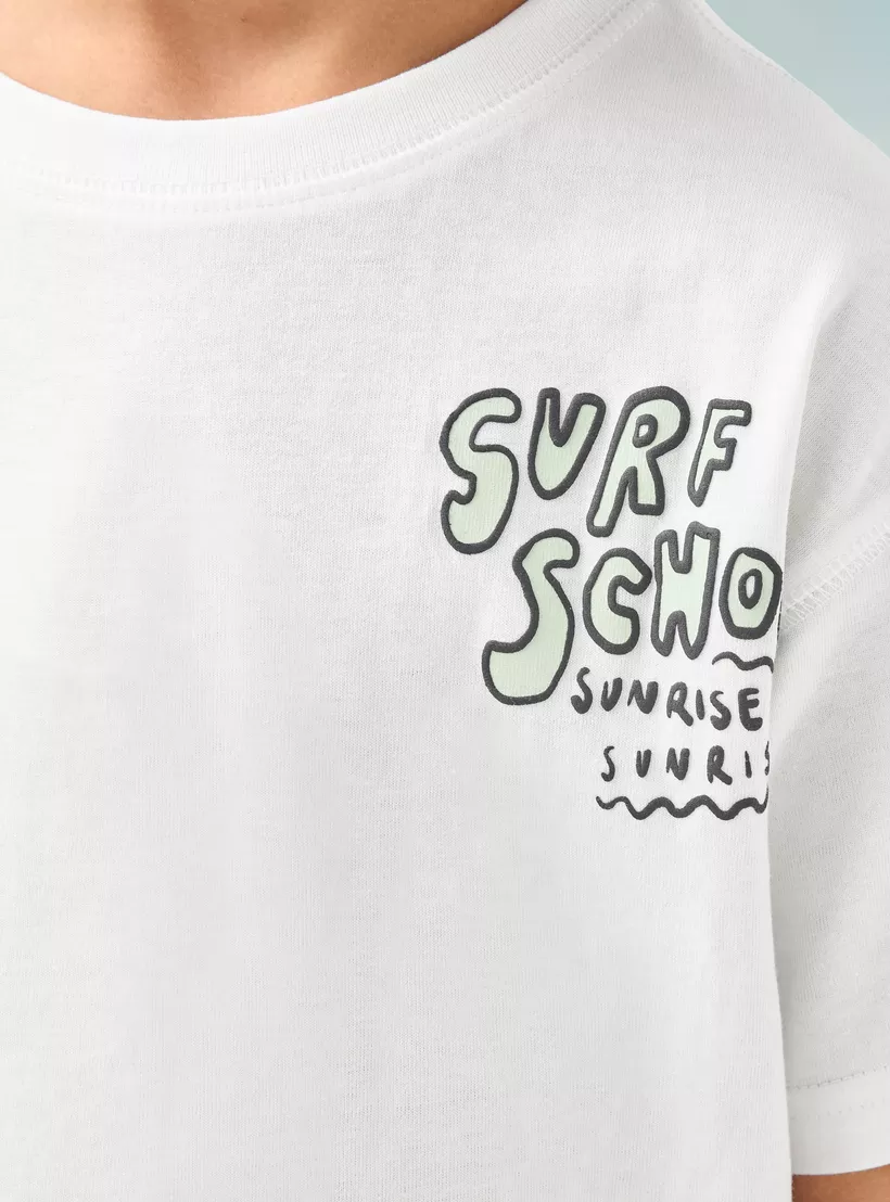 Juniors Graphic Print T-shirt with Short Sleeves