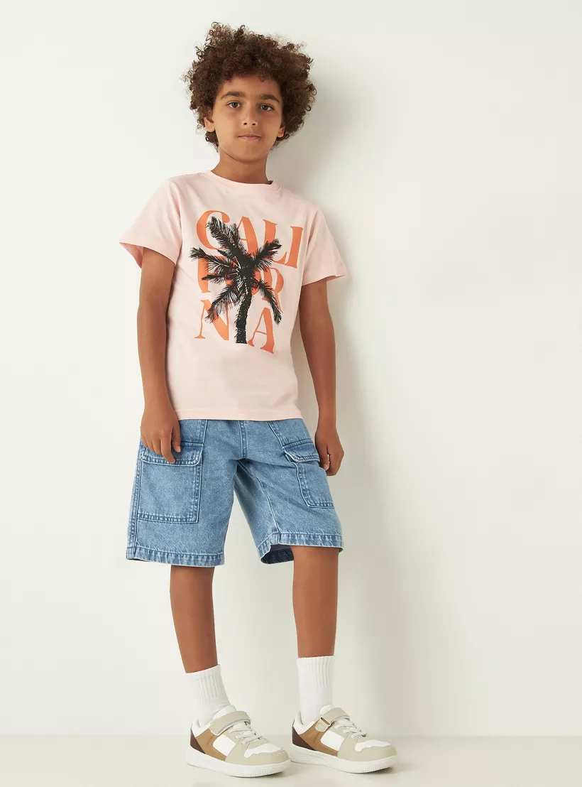 Juniors Graphic Print T-shirt with Short Sleeves and Crew Neck