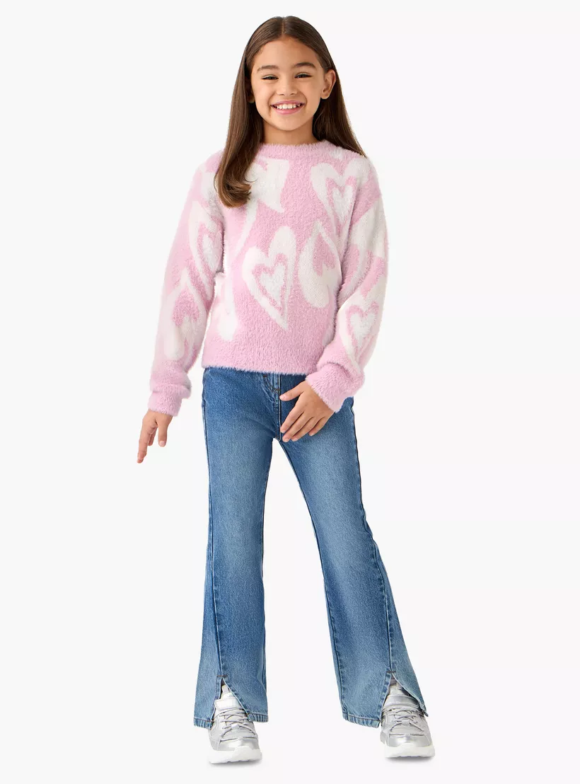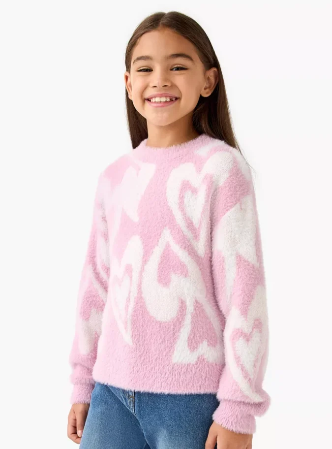 Add a touch of charm to your junior’s wardrobe with the Juniors Heart Print Pullover with Long Sleeves. Designed for both comfort and style, this cozy pullover features an adorable heart print that adds playful detail to any casual outfit. Its long sleeves and soft fabric make it perfect for layering during chilly days, ensuring warmth without compromising on style. Whether for school, playdates, or lounging at home, this pullover is a versatile piece every young fashionista will love.