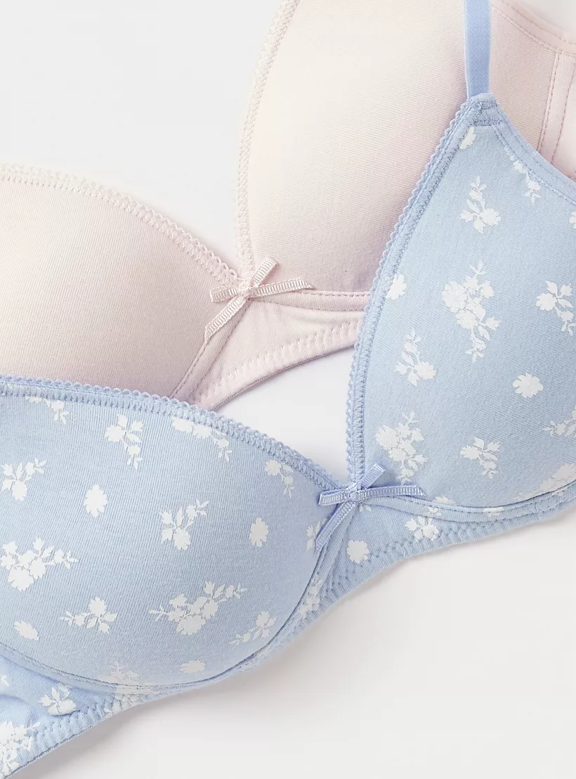 Equip your daughter’s everyday essentials with this pack of bras. Each bra flaunts a padded design with slender adjustable straps and a hook and eye closure to ensure a flexible fit. An assortment of colours and prints add to the overall appeal of this set.