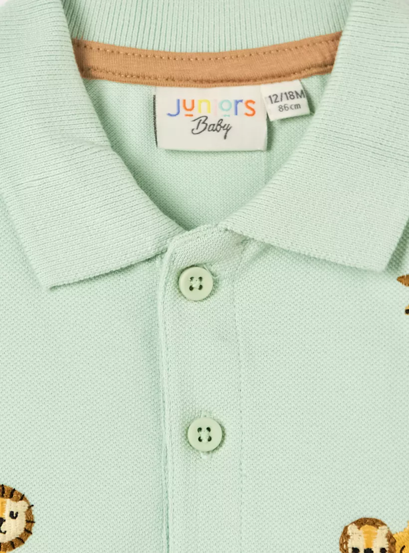 Juniors Lion Embroidered Polo T-shirt with Short Sleeves