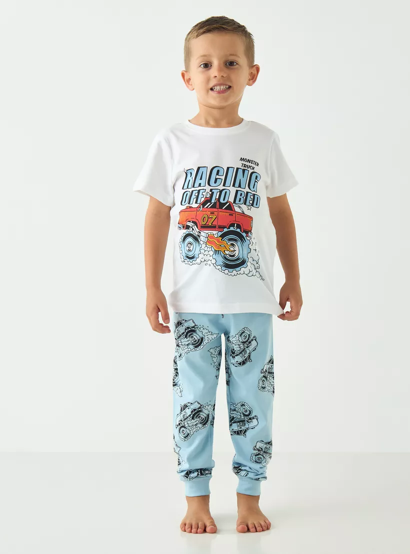 Juniors Monster Truck Print T-shirt and Pyjama Set