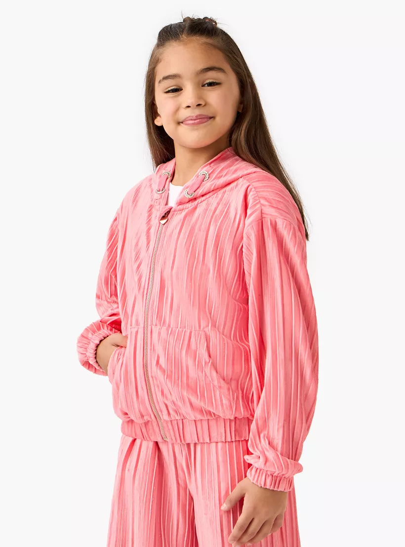 Juniors Pleated Hooded Sweatshirt and Track Pants Set