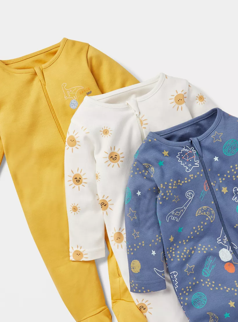 Juniors Printed Closed Feet Sleepsuit with Long Sleeves and Zip Closure – Set of 3