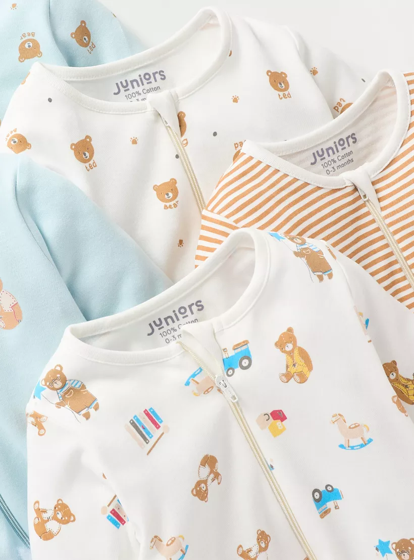 Juniors Printed Closed Feet Sleepsuit with Zip Closure – Set of 5