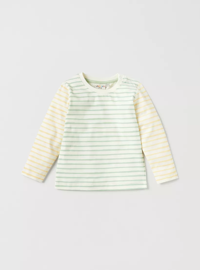This set of printed crew neck T-shirts with long sleeves is perfect for your little one. The soft cotton fabric will keep your baby comfortable all day long, while the playful prints add a touch of style. The T-shirts can be paired with jeans and sneakers for playdates or trips to the park
