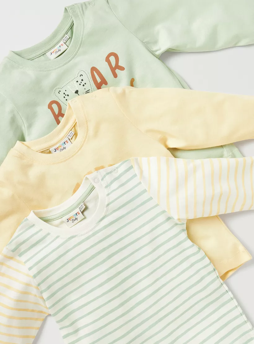 Juniors Printed Crew Neck T-shirt with Long Sleeves – Set of 3