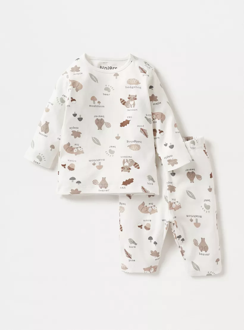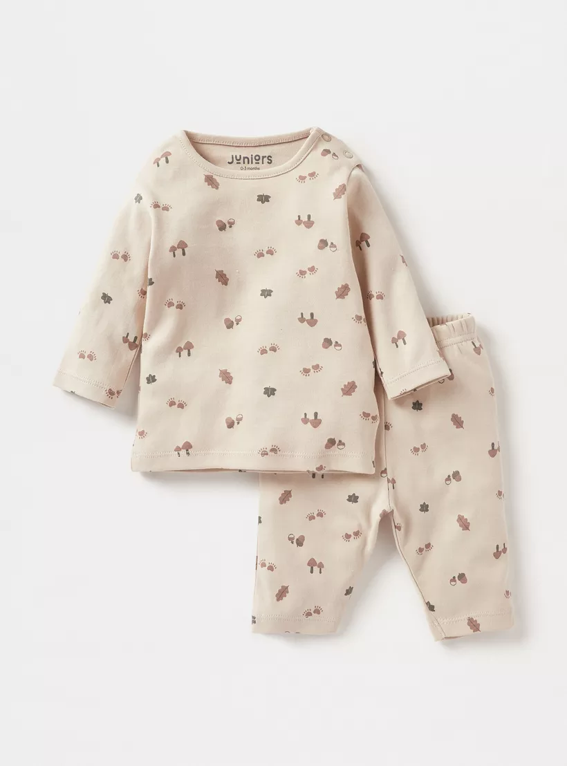 Juniors Printed Long Sleeves T-shirt and Pyjamas – Set of 2