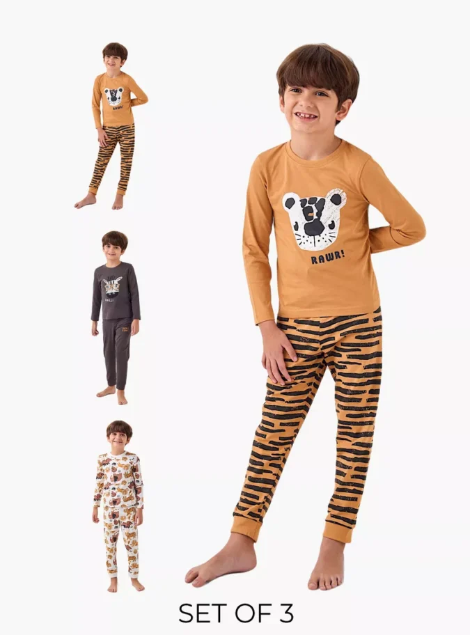 Set of 3 – Includes three coordinated T-shirts with matching pyjamas for versatile outfit options.