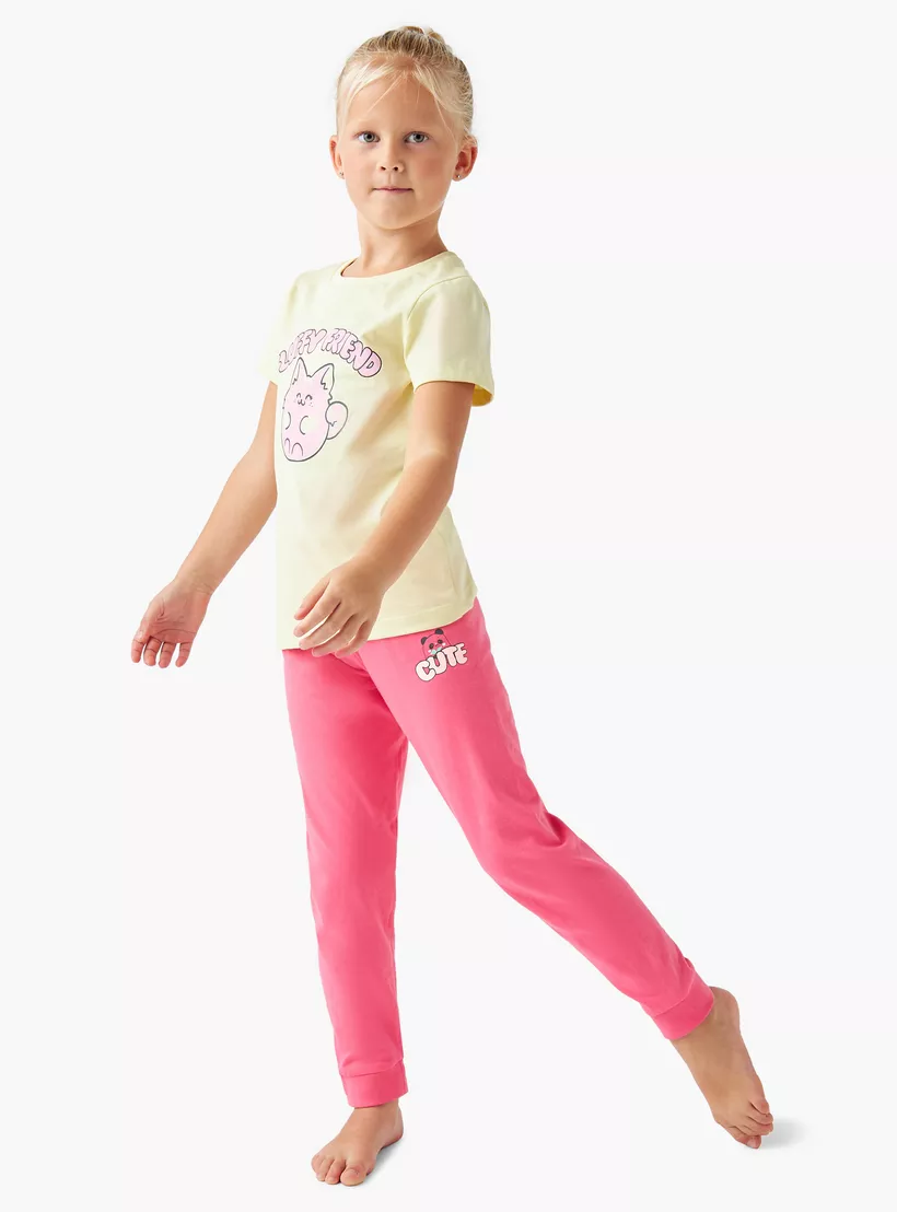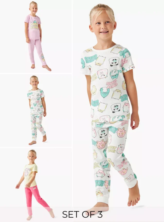 • 👕 Set of 3 Pieces – Includes 1 printed T-shirt and 2 pairs of matching pyjamas.