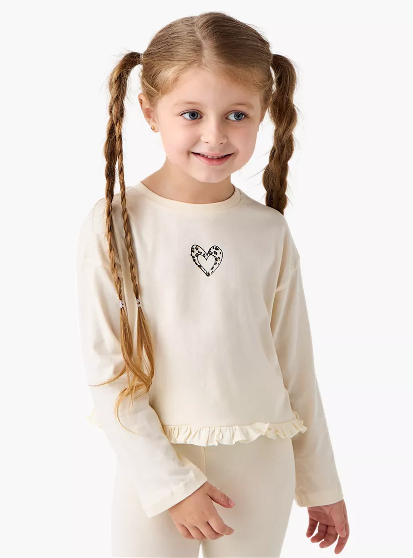 Juniors Printed T-shirt with Crew Neck and Long Sleeves – Set of 2