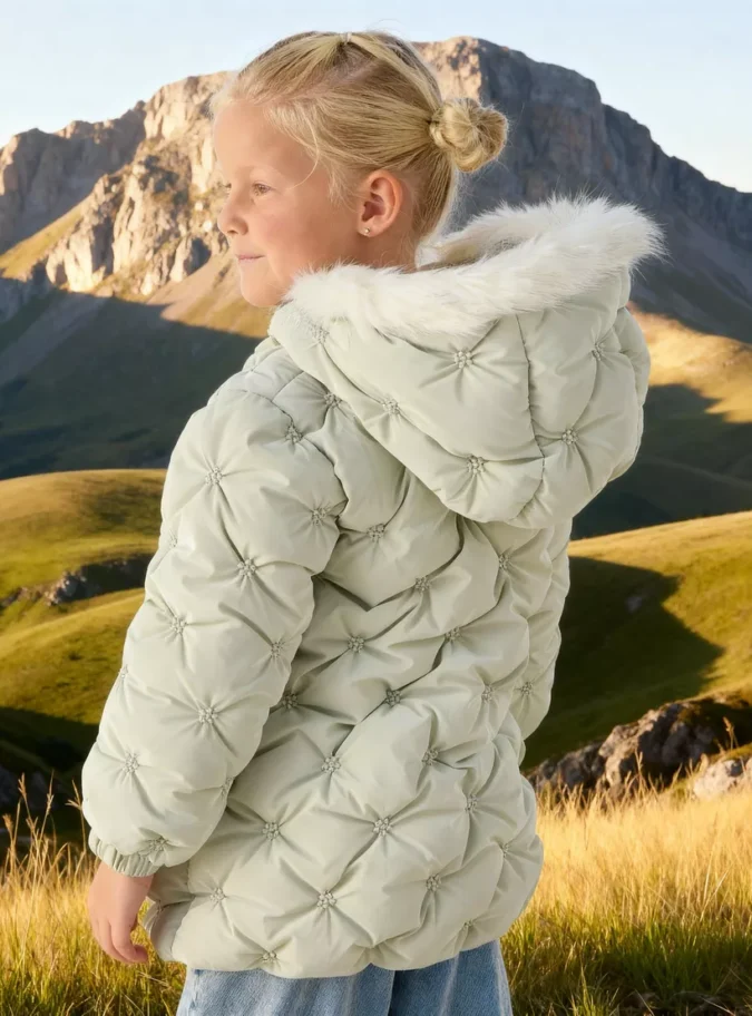 Juniors Quilted Heavy Jacket with Hood and Zip Closure