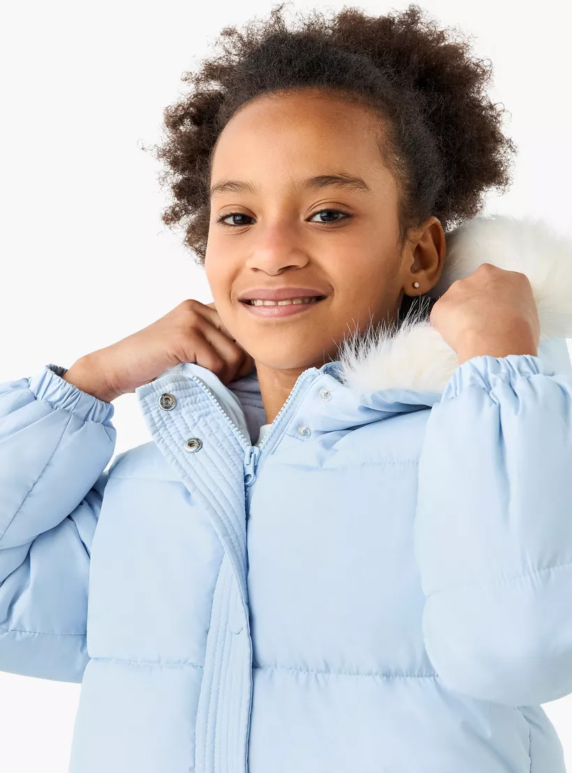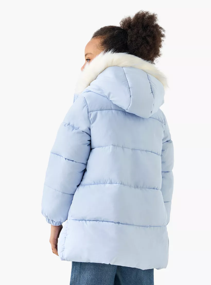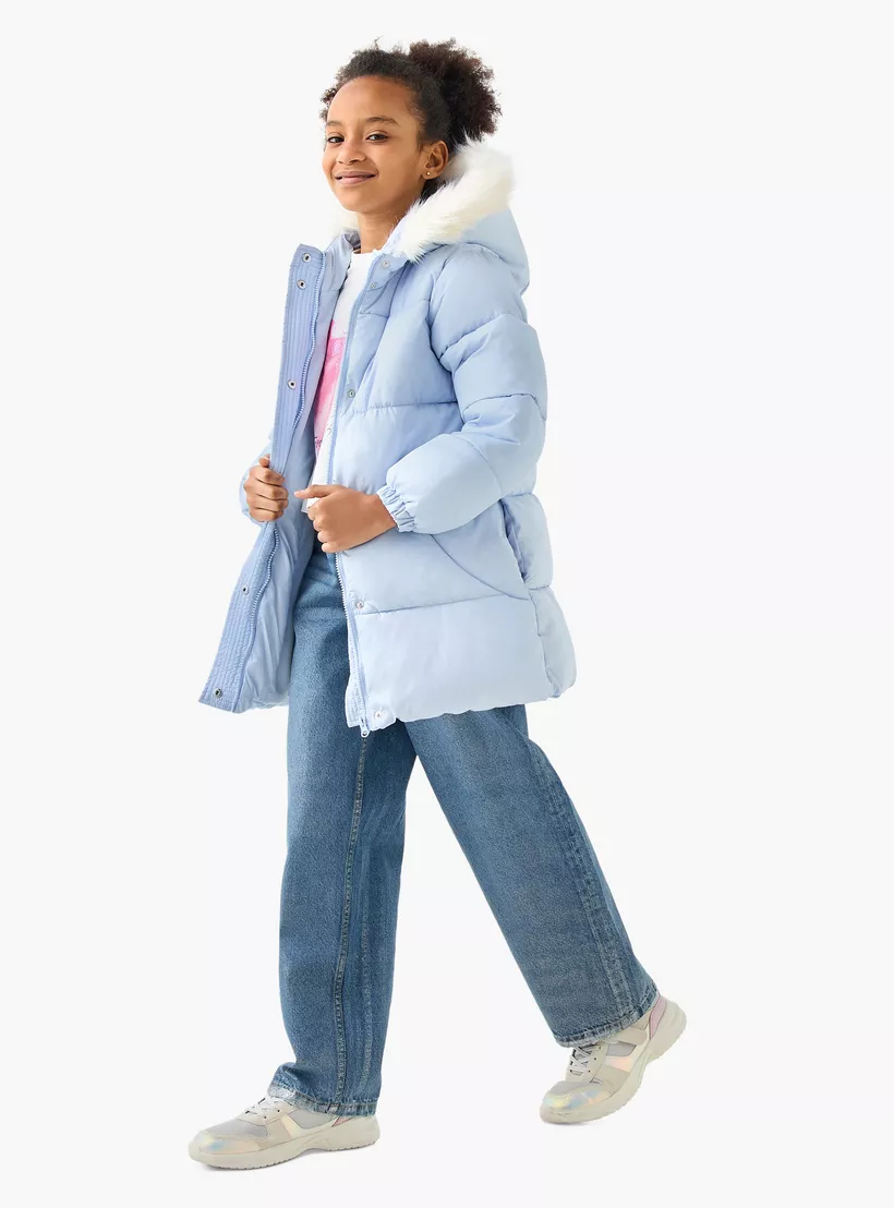 Juniors Quilted Hooded Heavy Jacket with Zip Closure and Pockets