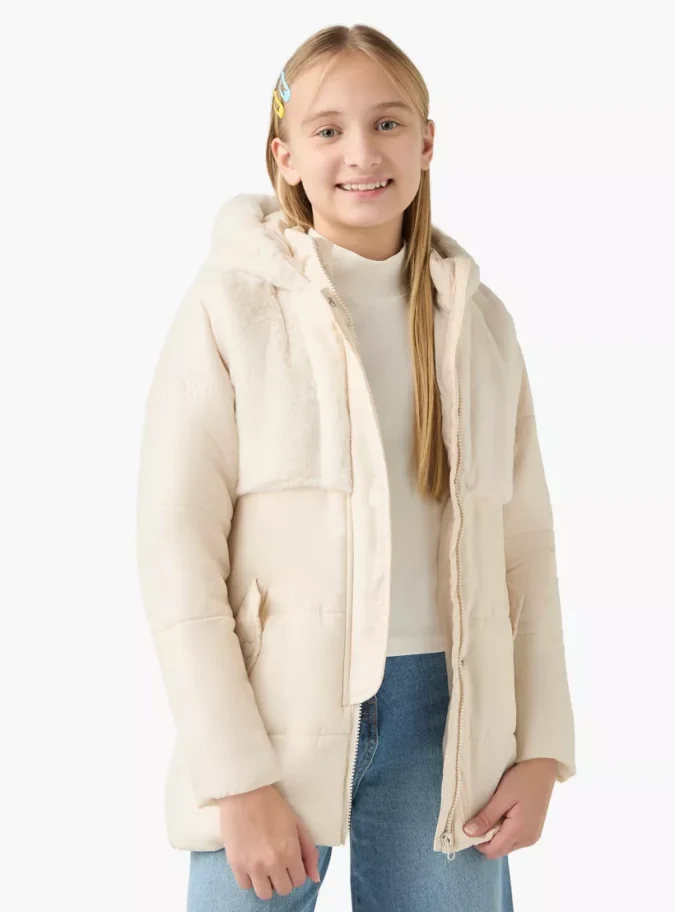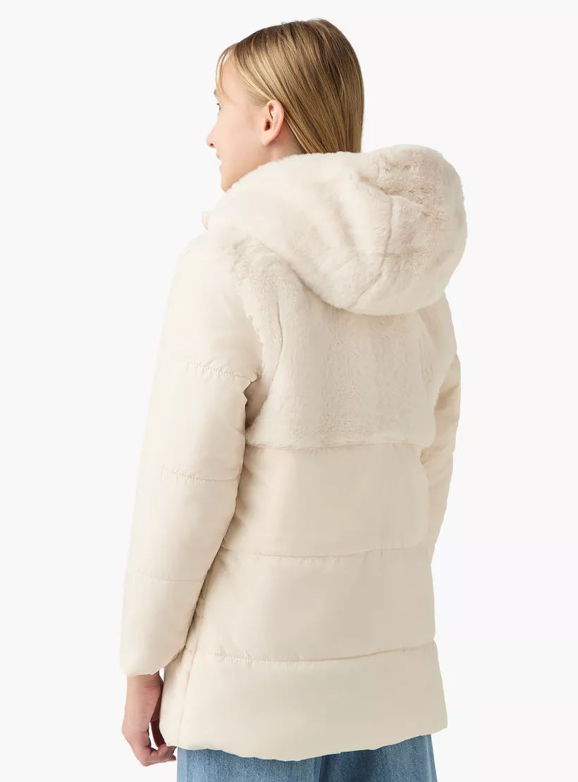 Faux Fur Hood: Soft, plush trim for added warmth and style.
