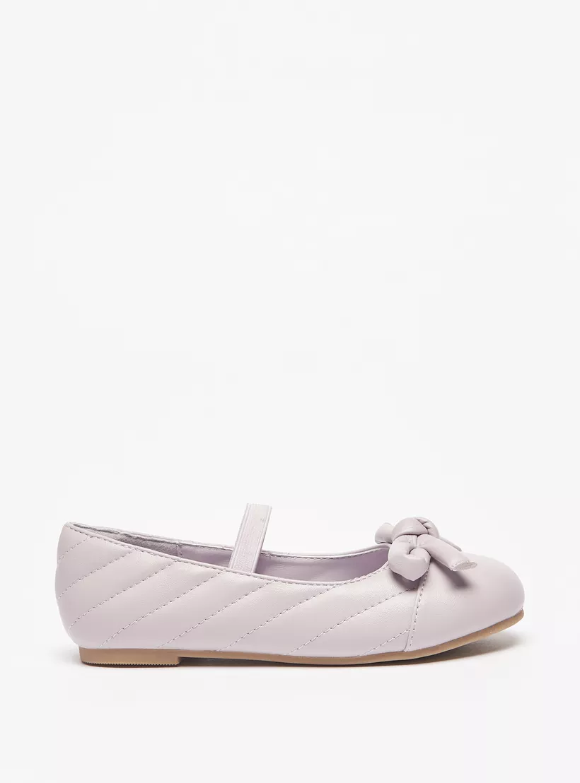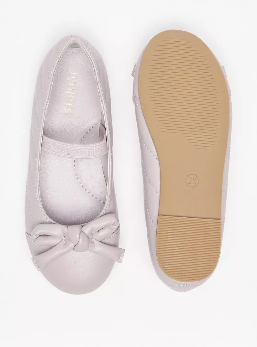 Juniors Quilted Round Toe Ballerina Shoes with Bow Detail