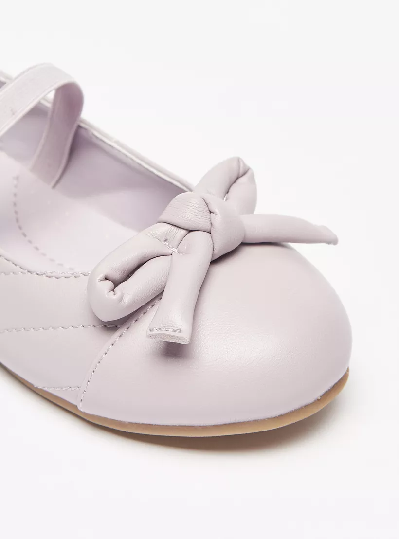 Add to your girl’s fashionable footwear collection with this beautiful pair of ballerina shoes. The quilted pattern and elegant tone add to its look, along with a neat bow trim on the front. A comfortable elastic strap across the top keeps the shoes in place when your girl is out and about.