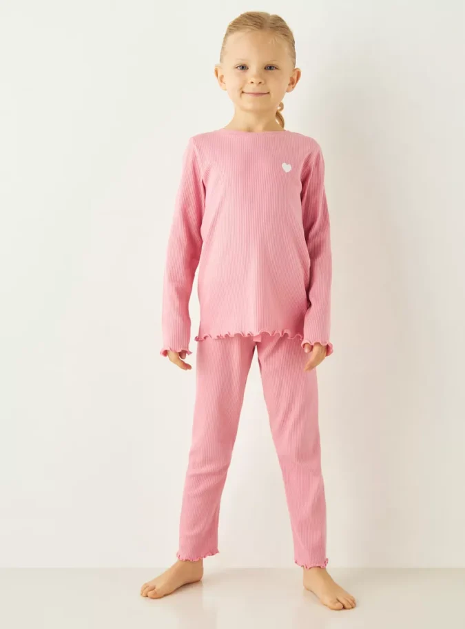 Juniors Ribbed Long Sleeves T-shirt and Elasticated Pyjama Set