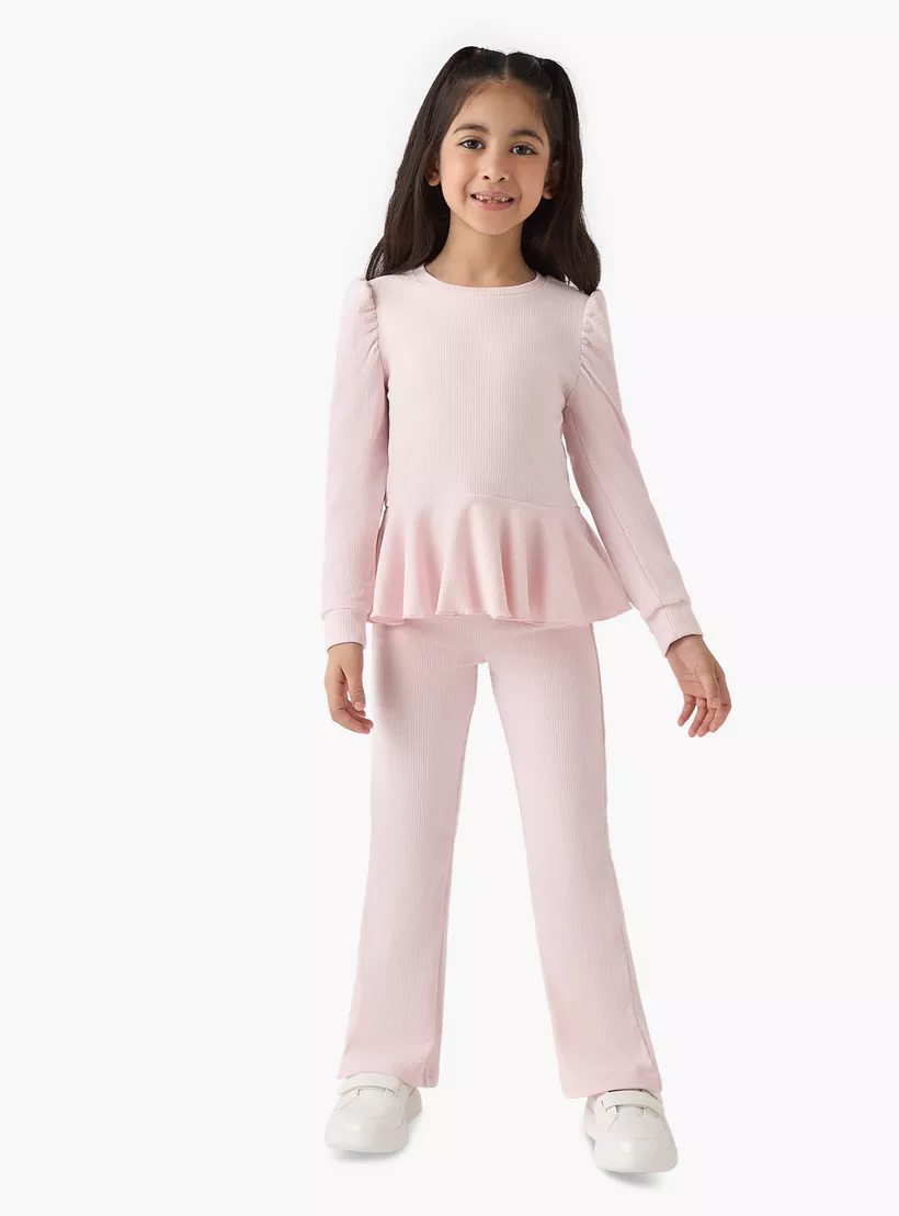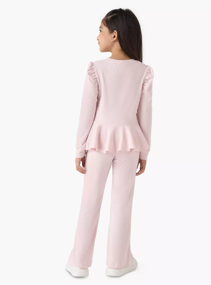 Juniors Ribbed Peplum Top and Pants Set
