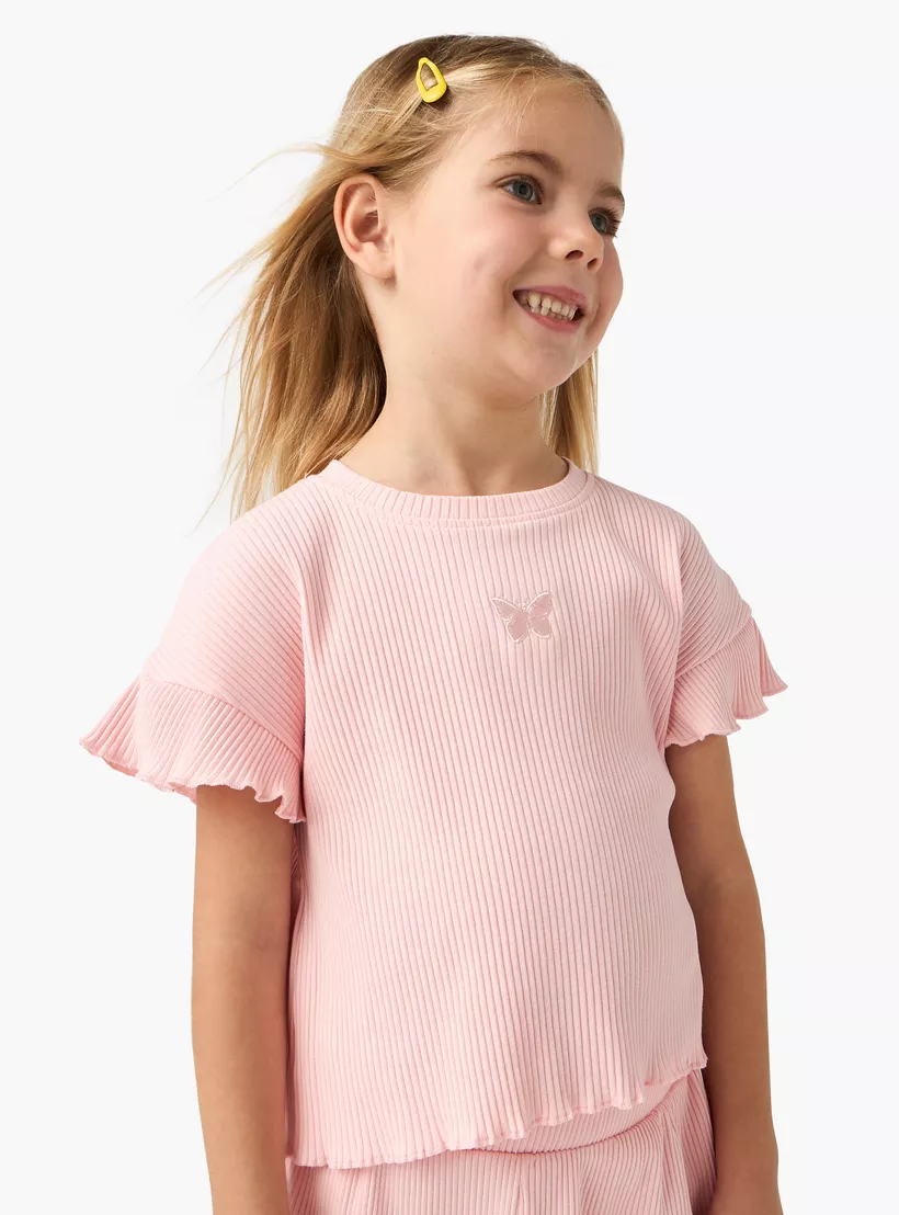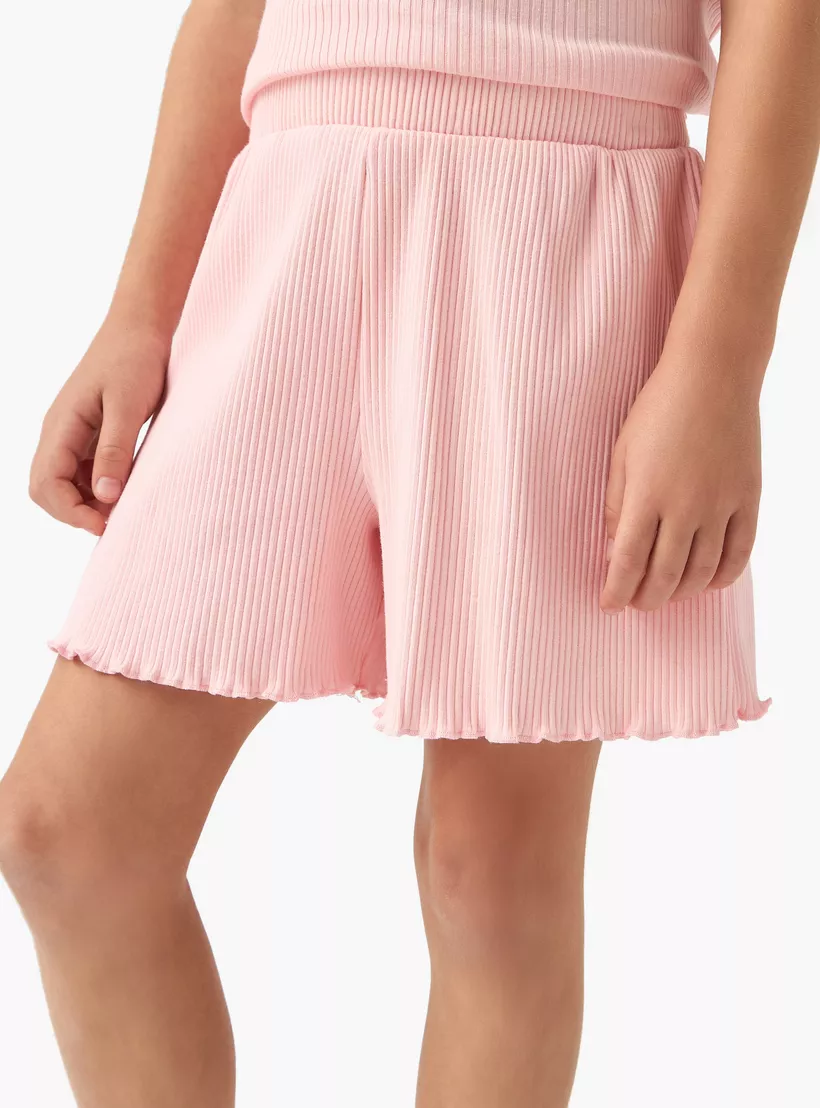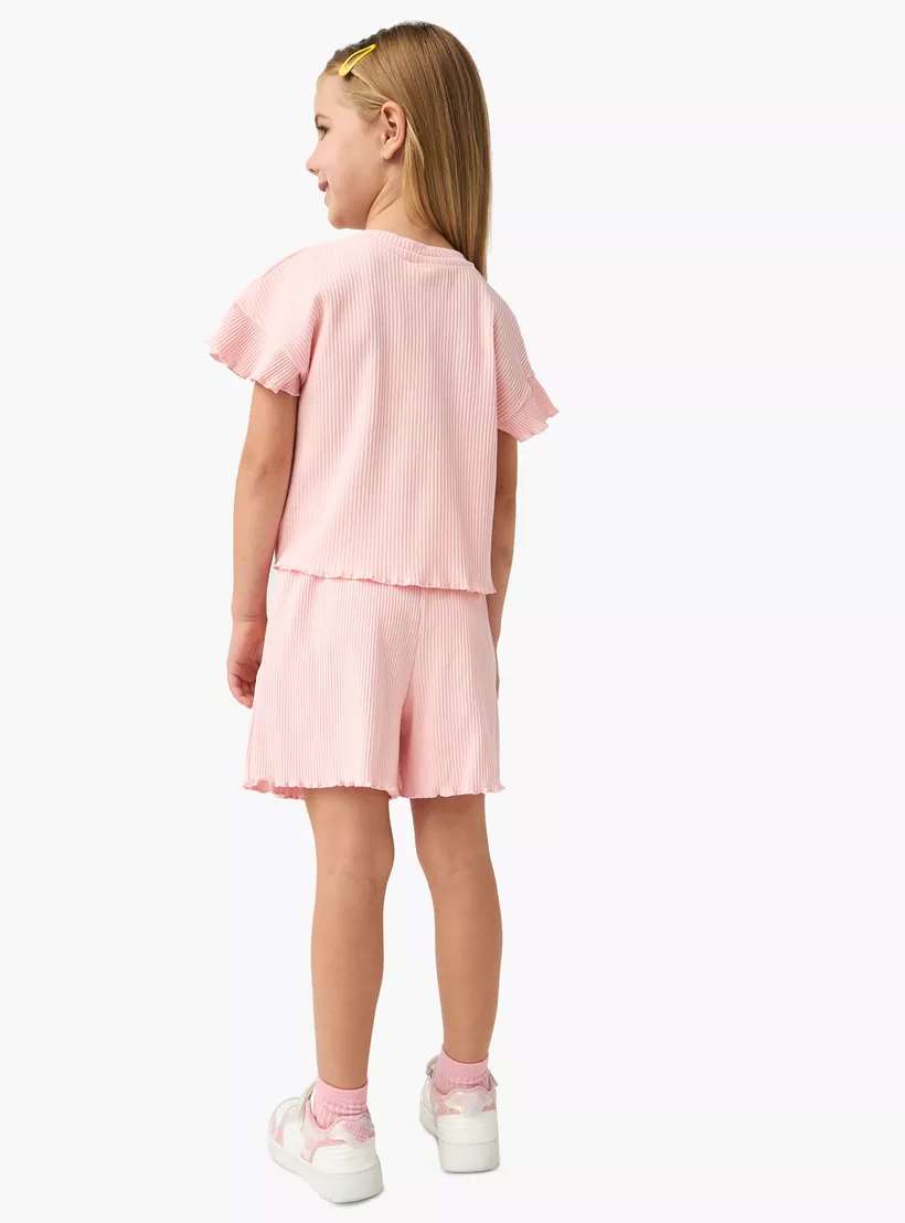 Matching Set – Includes a short-sleeve ribbed T-shirt and coordinated shorts for a complete, ready-to-wear outfit.