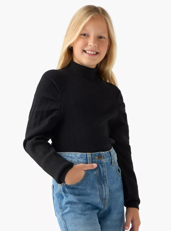 Juniors Ribbed Turtleneck Sweater with Long Sleeves