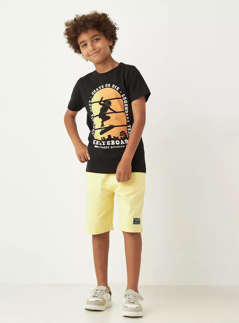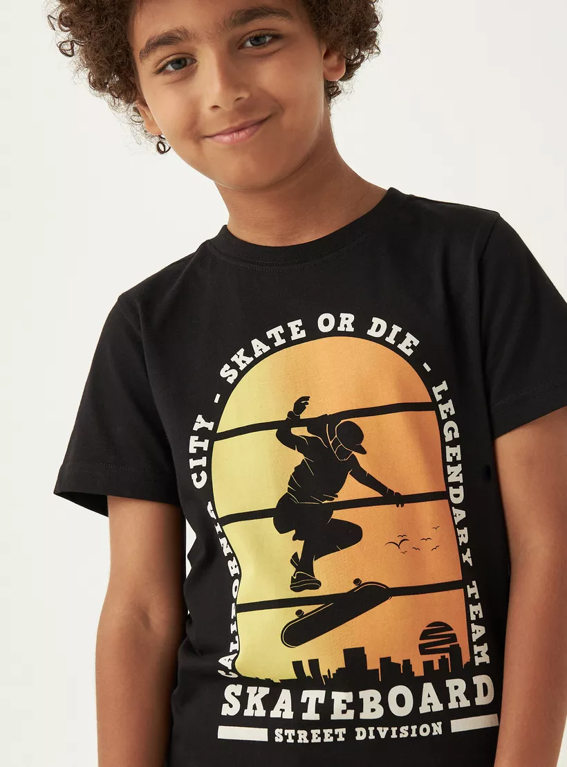 Juniors Skateboard Graphic Print T-shirt with Crew Neck and Short Sleeves