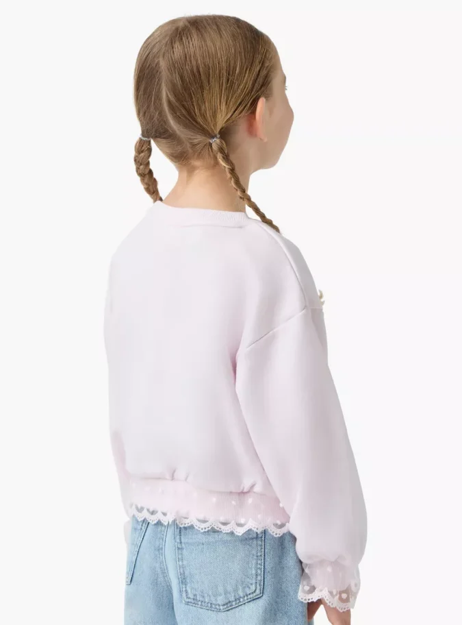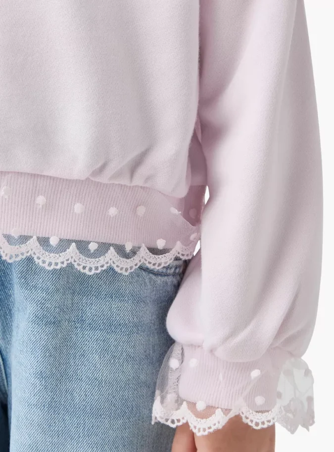 Juniors Slogan Embroidered Sweatshirt with Lace Detail and Long Sleeves