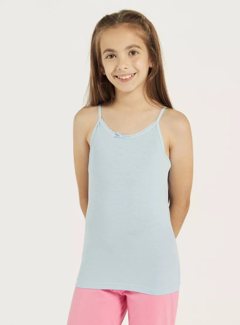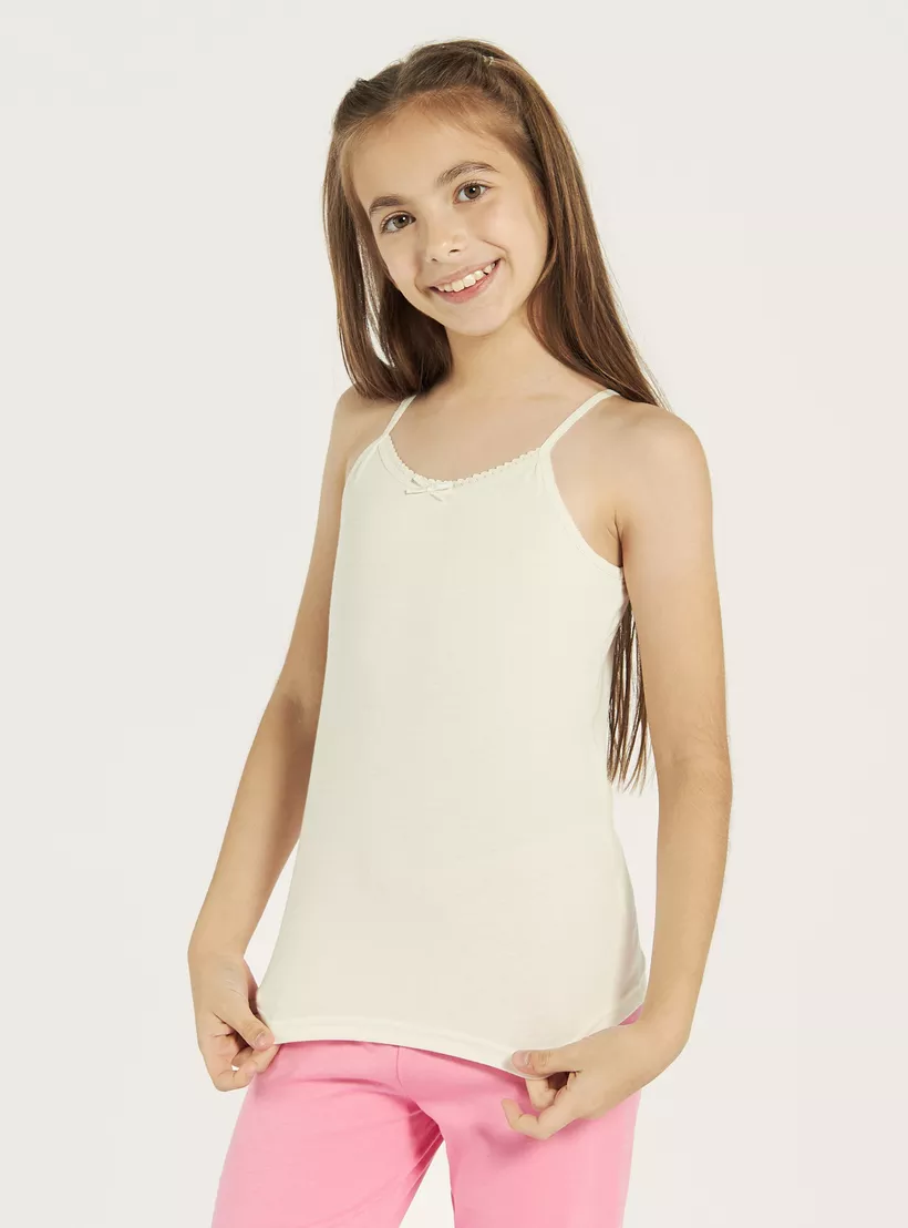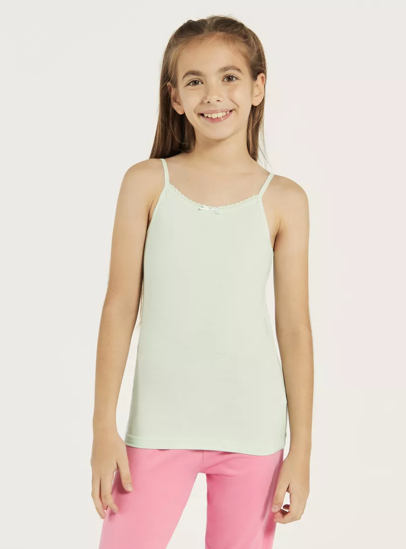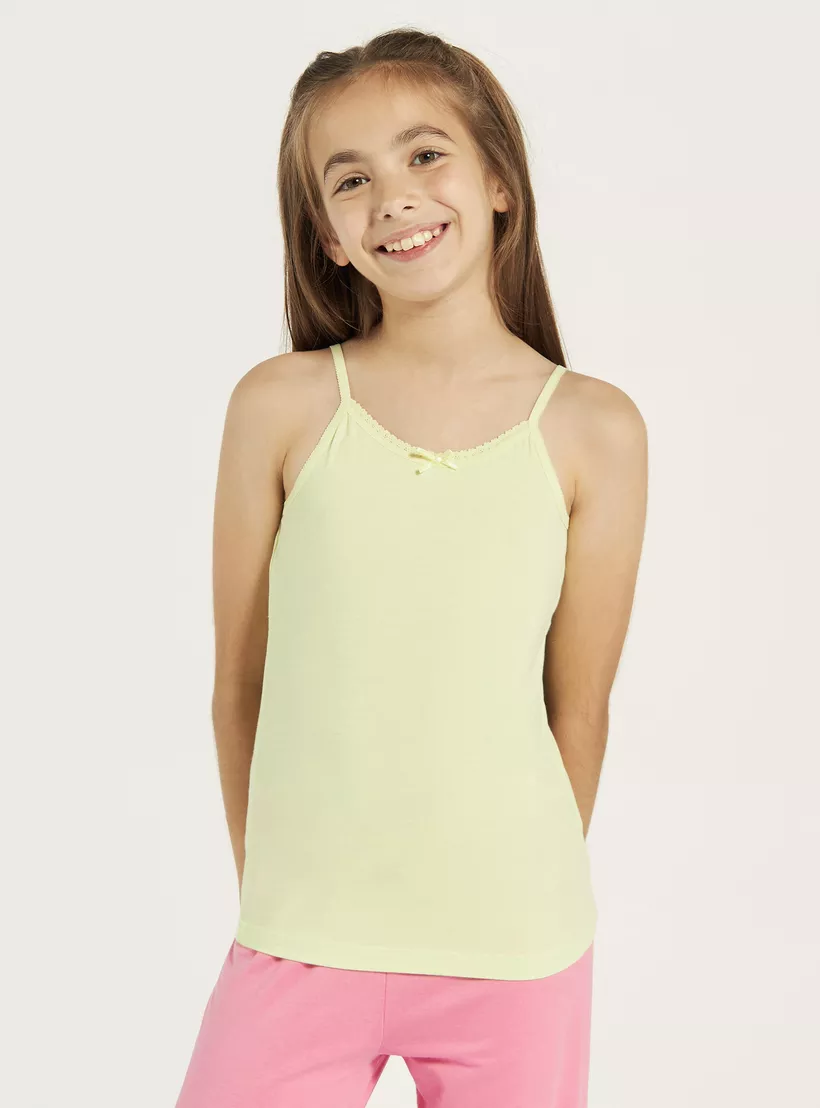 Juniors Solid Camisole with Scallop Trim and Bow Detail – Set of 5