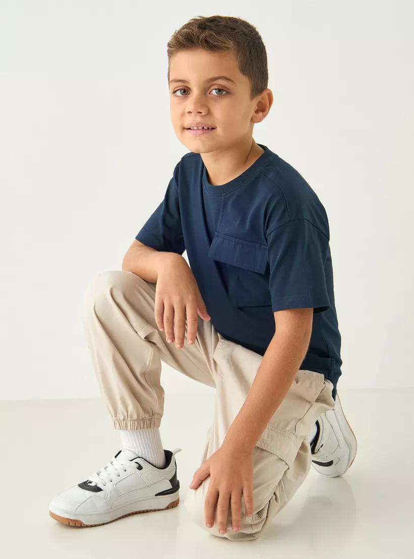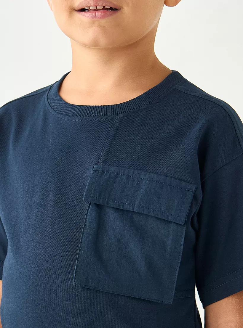 Juniors Solid Crew Neck T-shirt with Chest Pocket and Short Sleeves