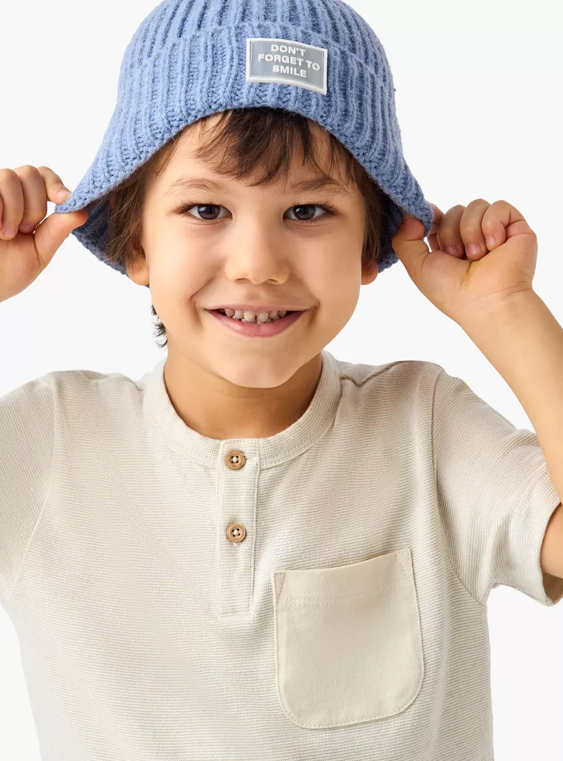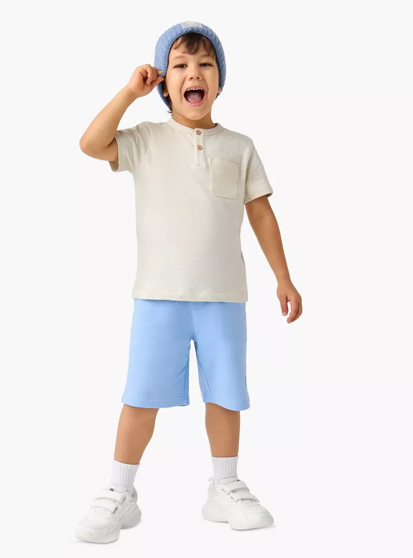 Juniors Solid Henley Neck T-shirt with Short Sleeves and Pocket
