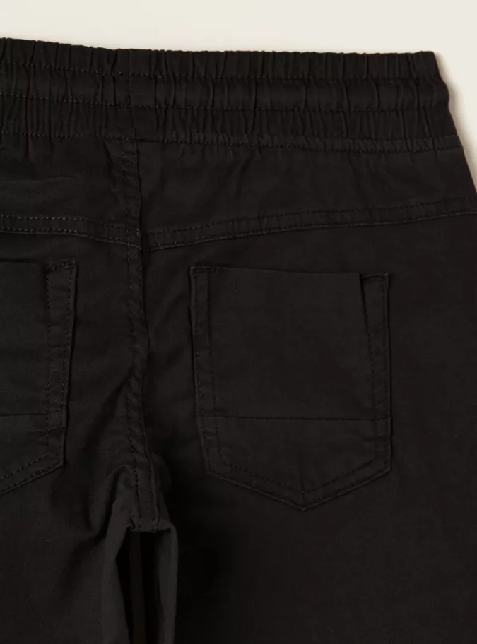 Juniors Solid Mid-Rise Pants with Drawstring Closure and Pockets