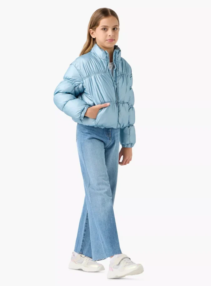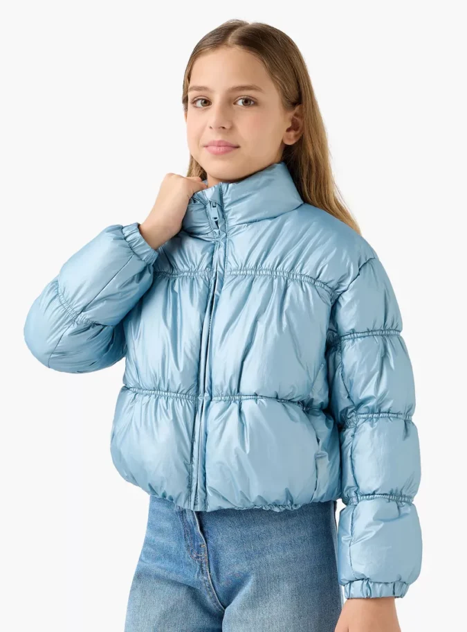 Juniors Solid Padded Jacket with High Neck and Zip Closure