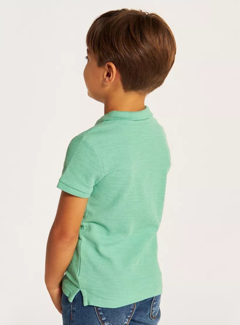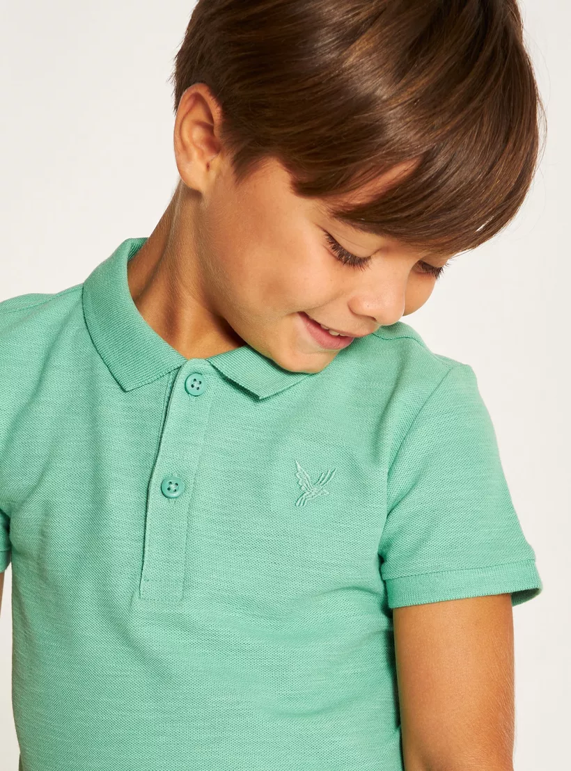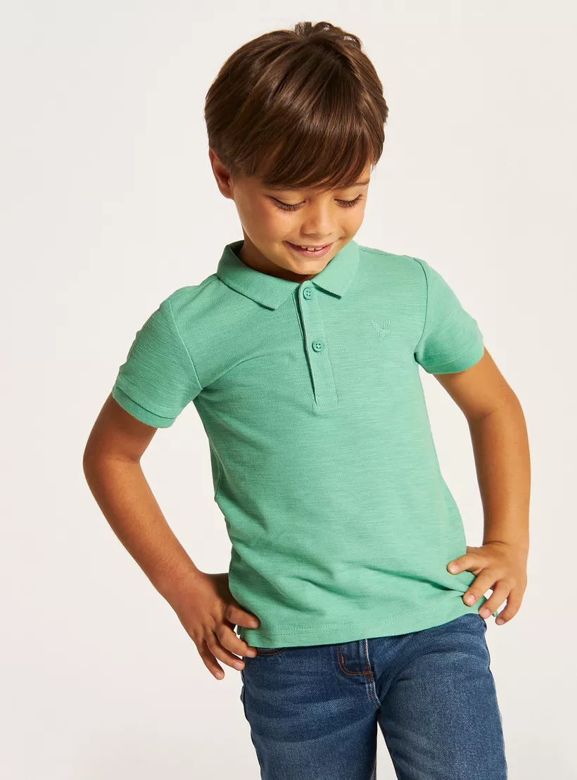 Juniors Solid Polo T-shirt with Short Sleeves and Button Closure