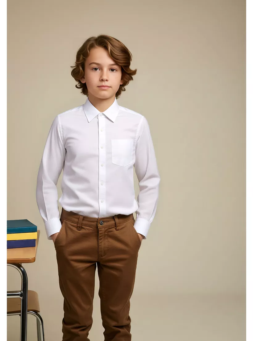 Juniors Solid Shirt with Chest Pocket and Long Sleeves