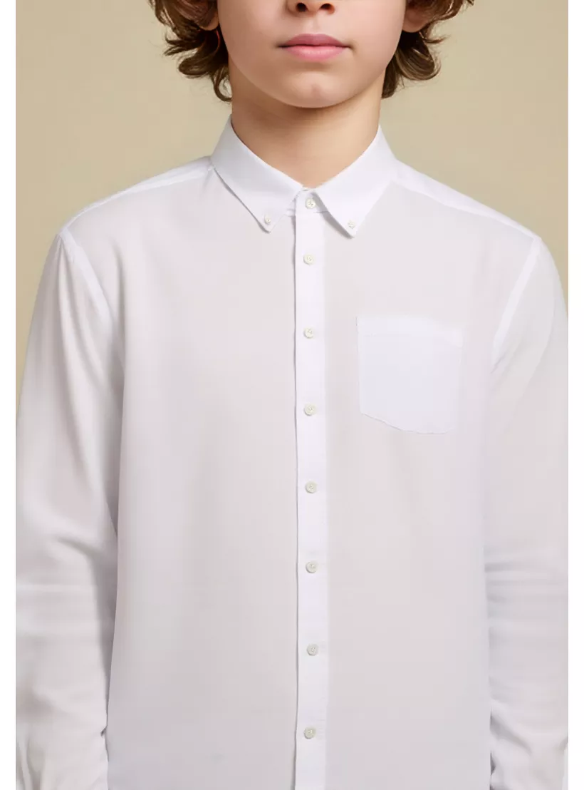 Juniors Solid Shirt with Chest Pocket and Long Sleeves