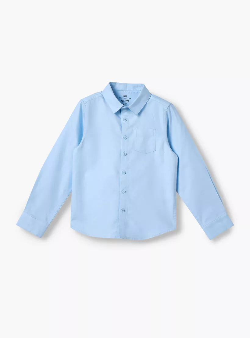 Juniors Solid Shirt with Long Sleeves and Chest Pocket