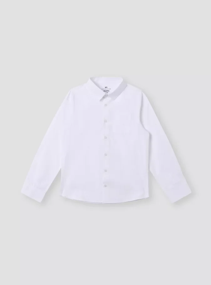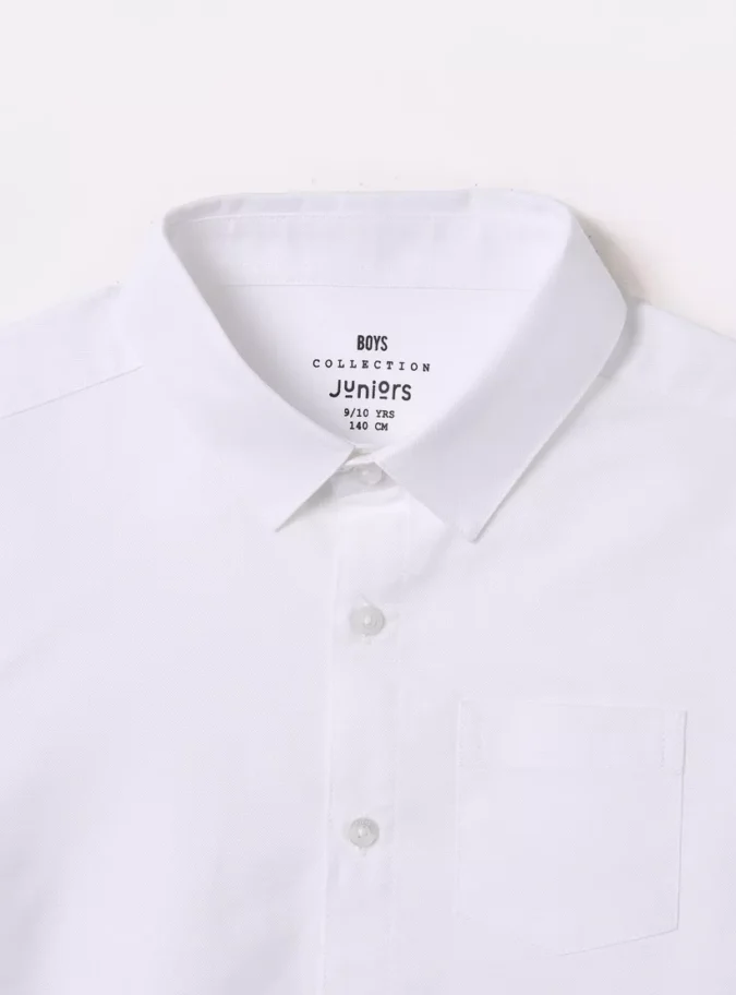 Juniors Solid Shirt with Long Sleeves and Chest Pocket