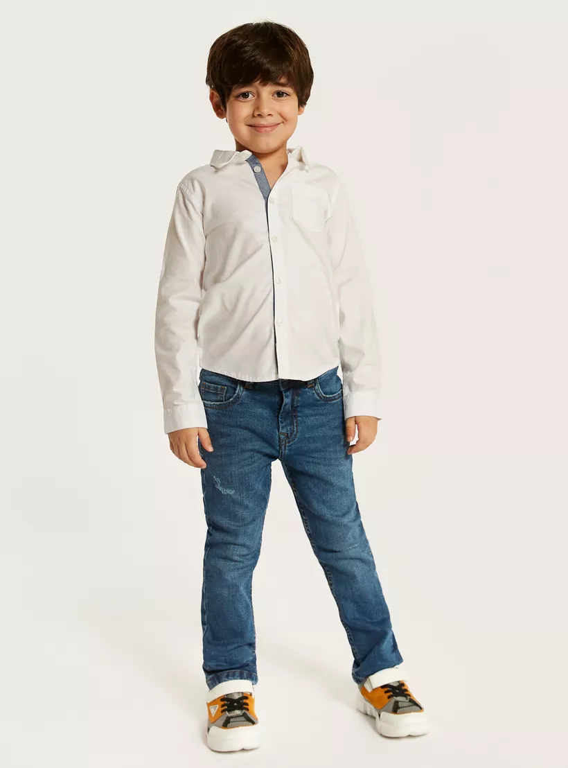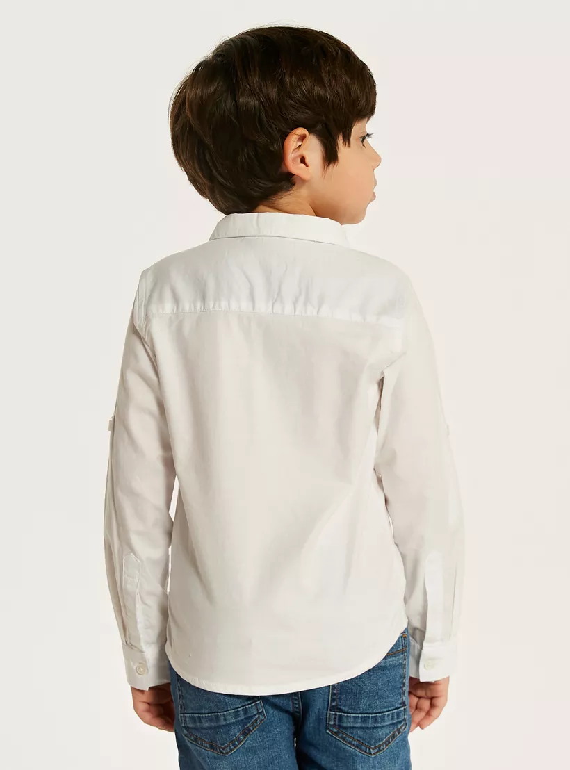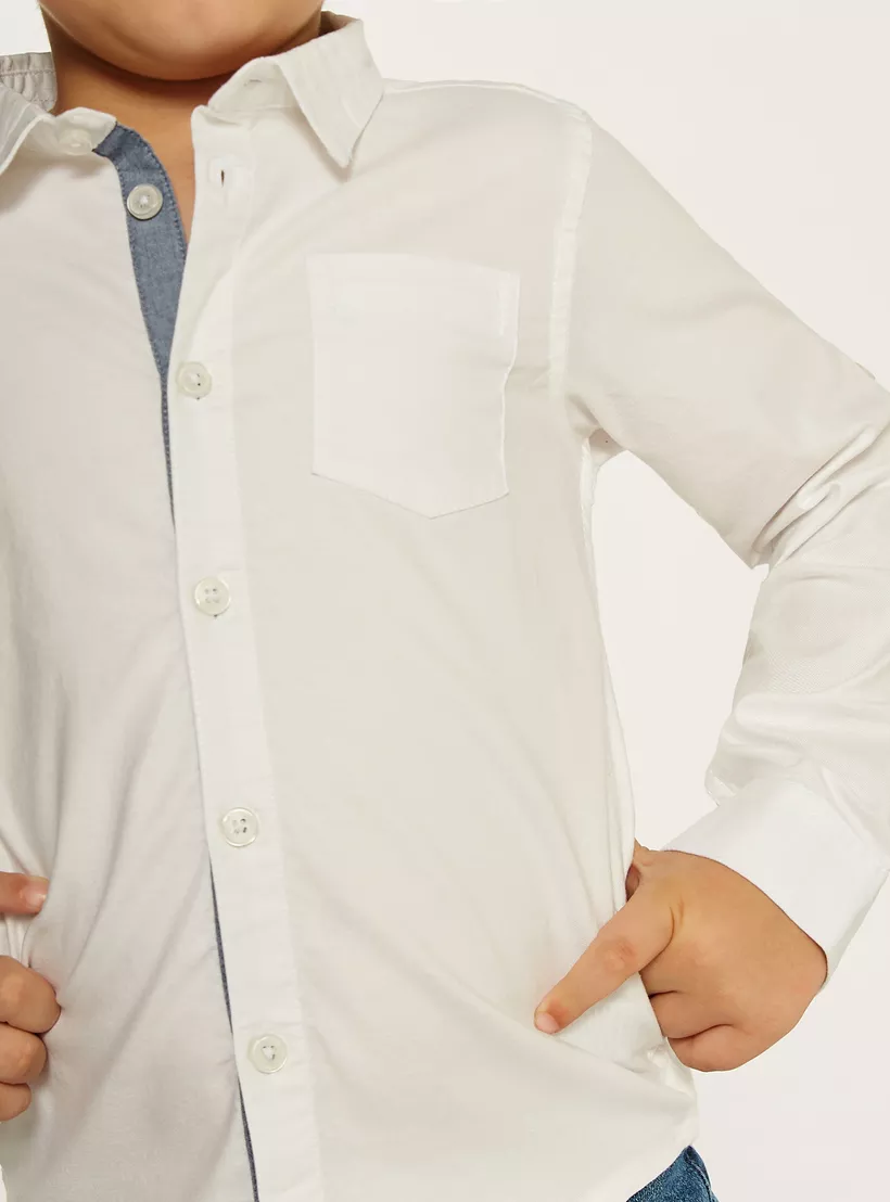 Juniors Solid Shirt with Long Sleeves and Chest Pocket