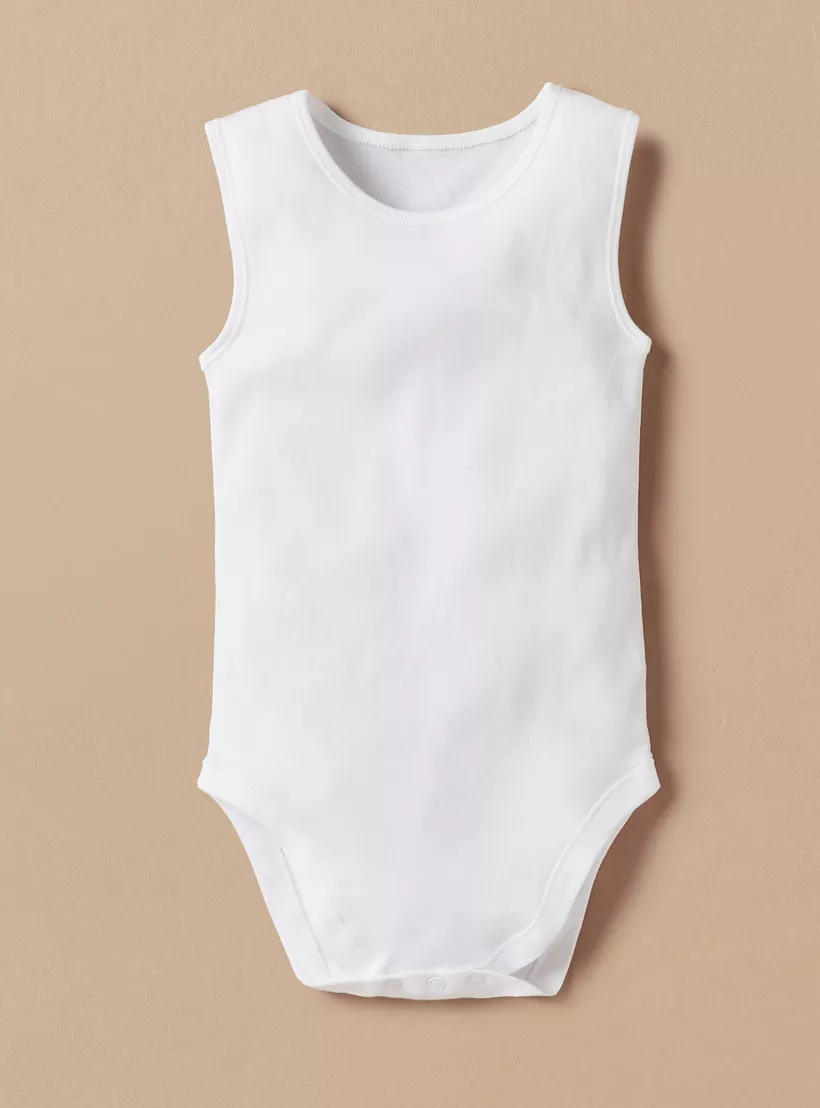 Maximum comfort and style come hand-in-hand when you get this set of five solid bodysuits. These sleeveless bodysuits will keep your baby cosy throughout the wear. The button closure makes it easy to dress and also lends a good fit. Moreover, the soft fabric makes it skin-friendly.