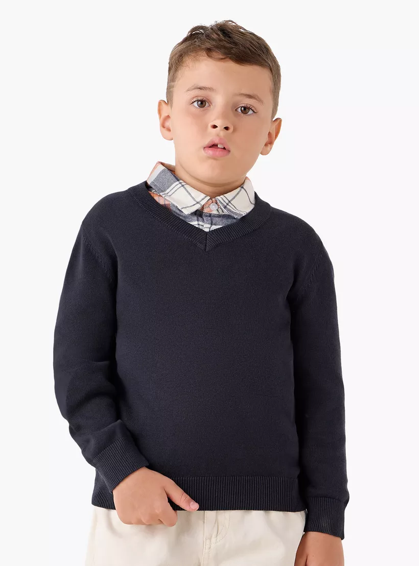 The Juniors Solid Sweater with V-neck and Long Sleeves is a wardrobe essential for young trendsetters who want comfort and style in one piece. Crafted from a soft, breathable knit, this sweater offers a sleek solid color design that pairs effortlessly with jeans, skirts, or trousers. The V-neck detail adds a modern, feminine flair, while the long sleeves keep you cozy during chilly days. Whether you’re dressing for school, casual outings, or layering under jackets, this juniors sweater delivers both versatility and everyday style. A must-have staple for any fashion-forward junior’s collection.