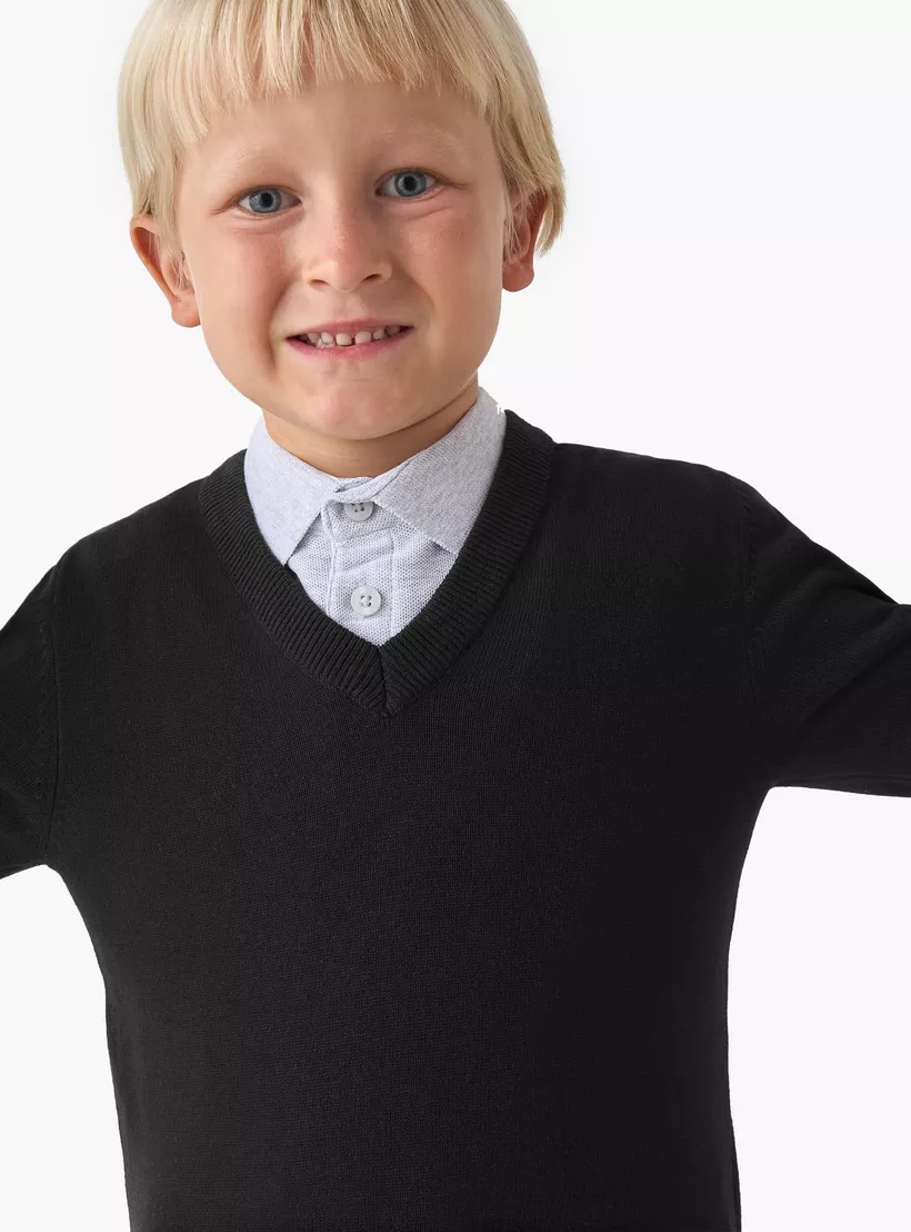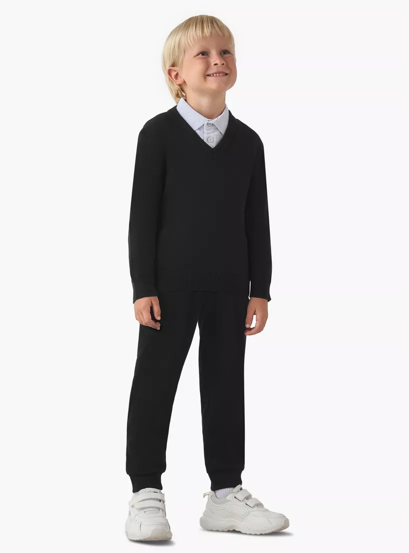 The Juniors Solid Sweater with V-neck and Long Sleeves is the perfect blend of comfort, style, and versatility. Featuring a sleek solid color and a classic V-neckline, this sweater easily transitions from school days to casual outings. Its long sleeves provide extra warmth, while the breathable fabric ensures you stay cozy without overheating. Designed with juniors in mind, the fit is modern yet relaxed, making it ideal for layering over tees, collared shirts, or pairing with jeans and skirts. Whether you’re dressing up for a casual dinner or keeping it laid-back, this solid sweater is a wardrobe essential for every season.