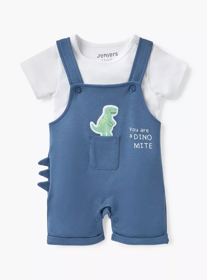 2-Piece Set: Includes a soft T-shirt and coordinating dungaree.