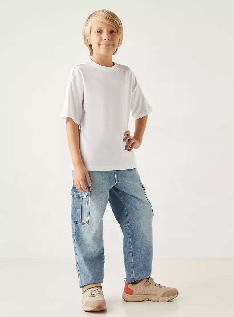 Juniors Solid T-shirt with Short Sleeves and Crew Neck