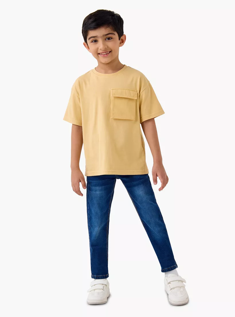 The Juniors Solid T-shirt with Short Sleeves and Flap Pocket is a stylish and comfortable wardrobe staple designed for young fashion enthusiasts. Made from soft, breathable fabric, this T-shirt ensures all-day comfort while offering a practical flap pocket on the chest for added functionality. The classic short sleeve design provides a cool and casual look, perfect for warm weather or layering. Whether it’s for casual outings or playdates, this versatile T-shirt combines comfort with a modern design.