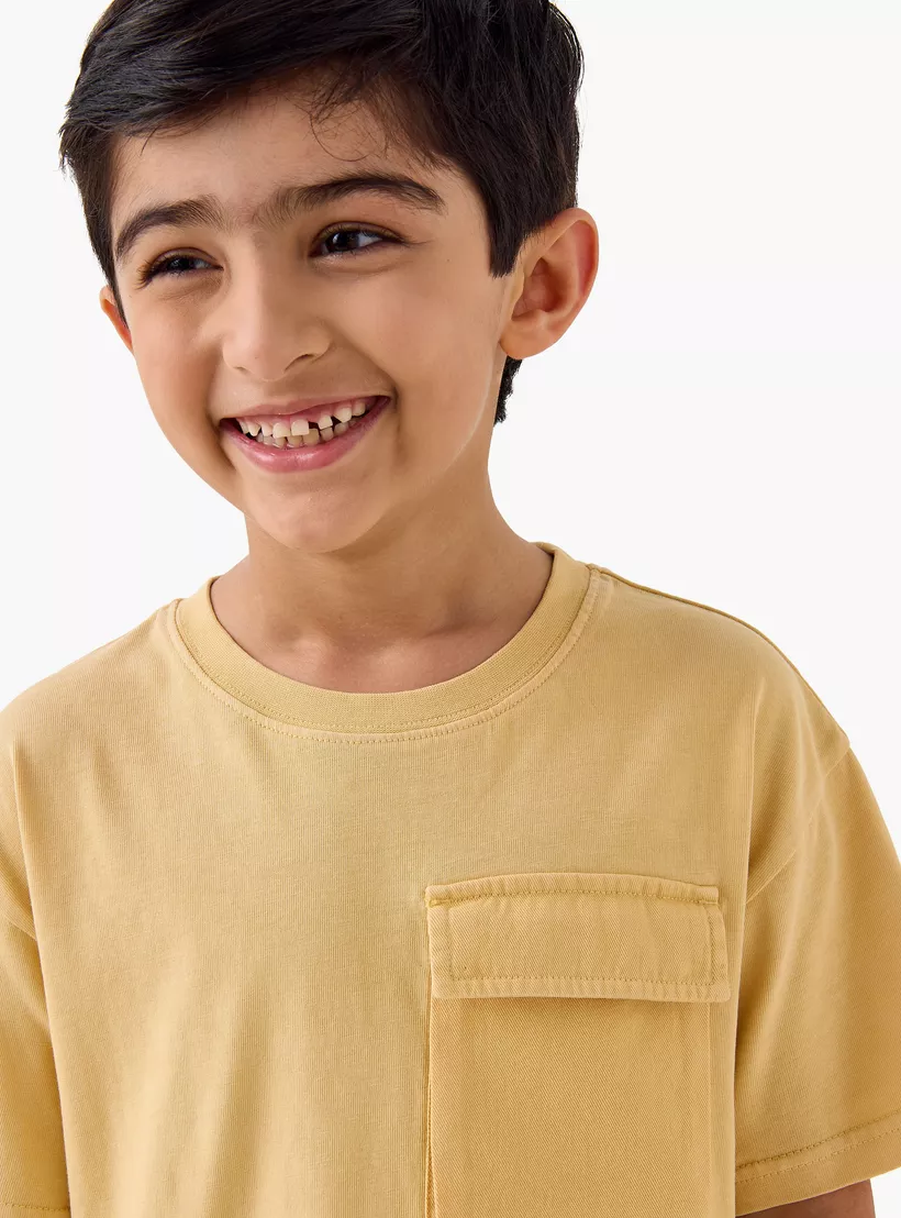Juniors Solid T-shirt with Short Sleeves and Flap Pocket