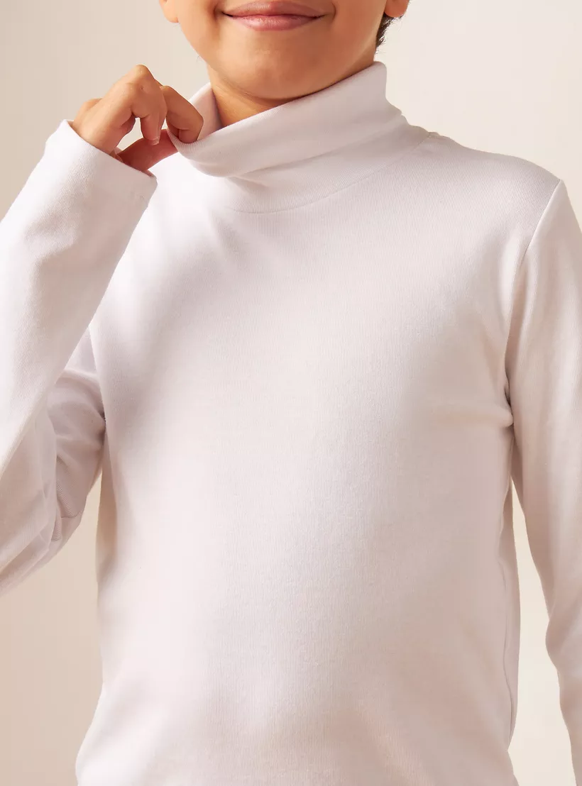 Elevate your wardrobe with our Juniors Solid Turtle Neck T-shirt with Long Sleeves. Crafted from a soft and breathable cotton blend, this t-shirt ensures comfort throughout the day while offering durability that stands up to everyday wear. The classic solid color and stylish turtle neck design make it a versatile piece, perfect for layering under jackets or wearing solo.
