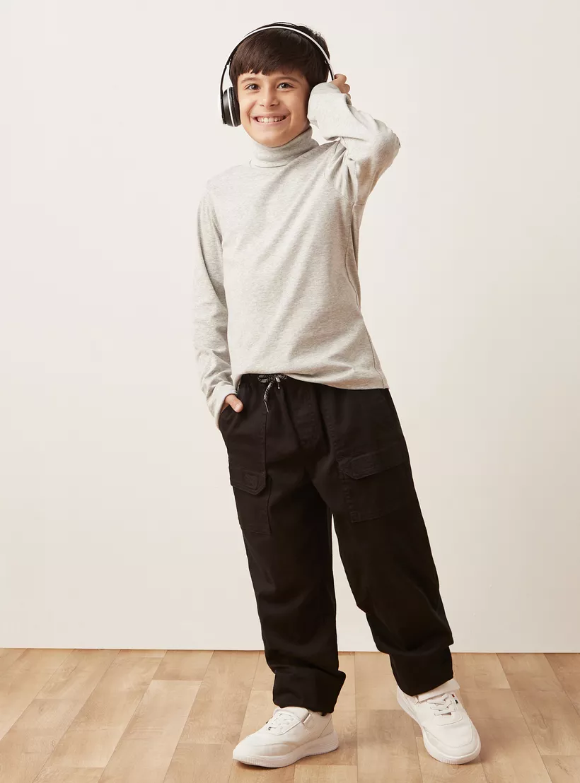Juniors Solid Turtleneck T-shirt with Long Sleeves